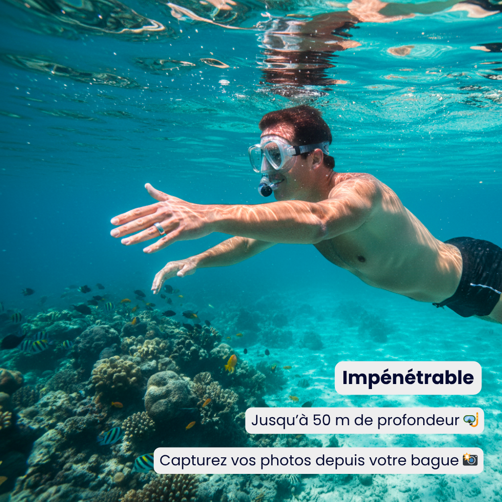 Oui ! La bague est résistante à l’eau, vous pouvez la porter pendant le lavage des mains, la douche, vous pouvez plonger jusqu'à 50m sans aucun soucis !